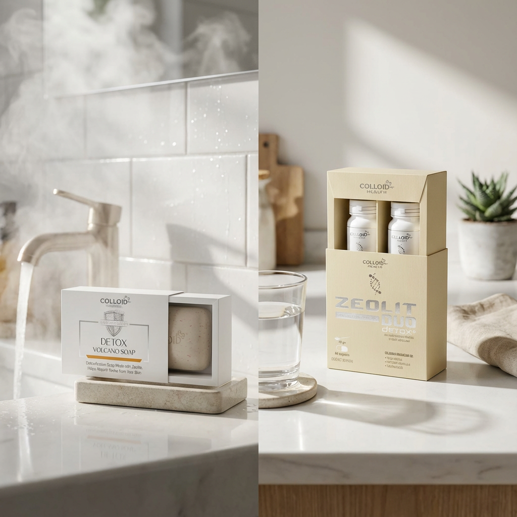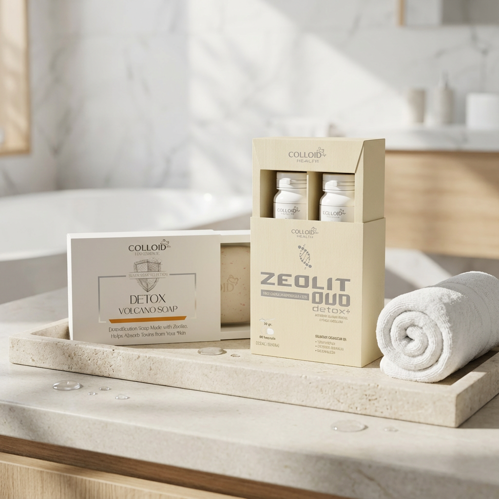 Detox set kombinuje unutrašnju i spoljašnju rutinu: Zeolit Duo Detox+ (kapsule i prah) i DetoX Volcano Soap za svakodnevno čišćenje kože. Namenjen je onima koji žele praktičan paket za podršku rutini detoksa i nege.